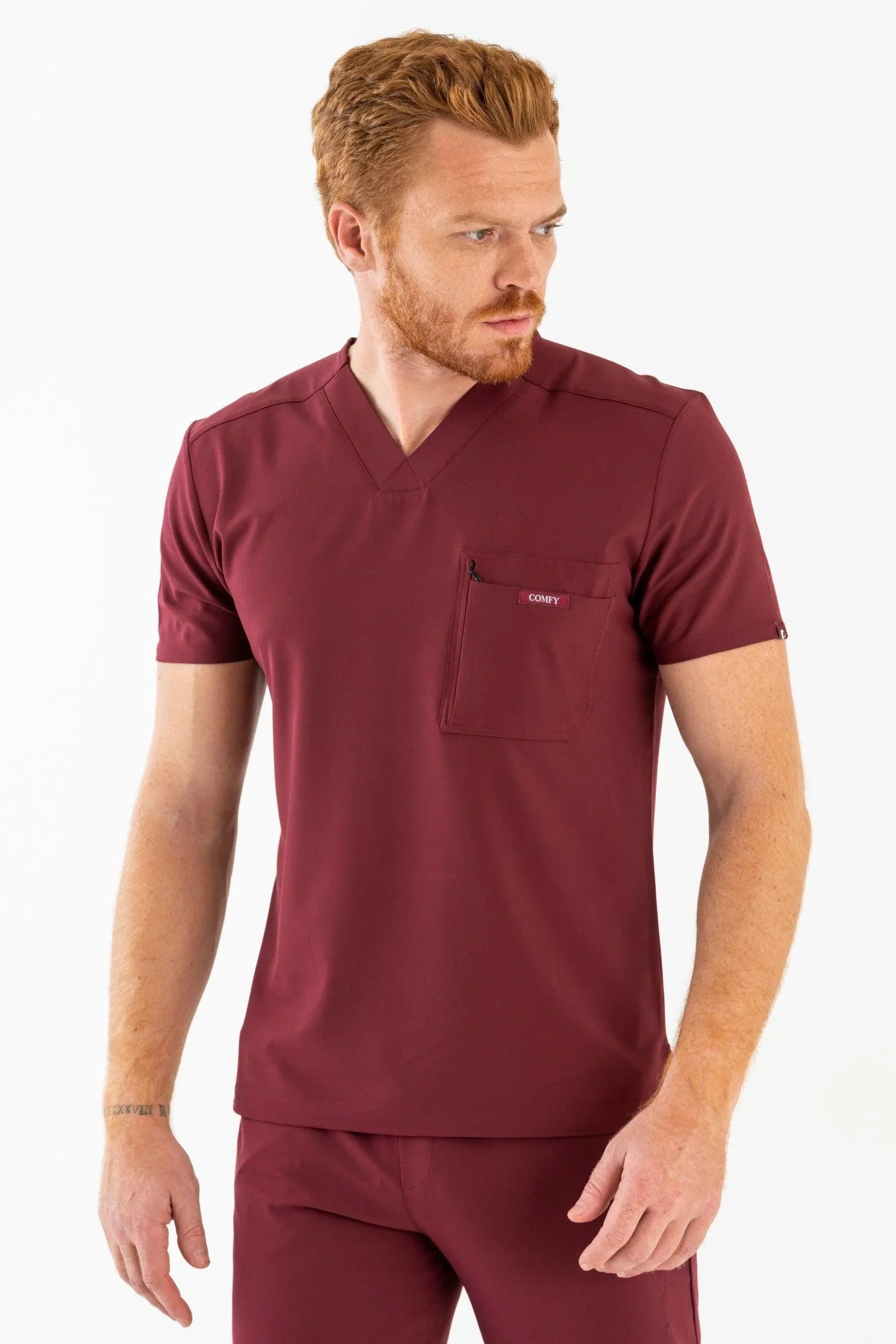 Rebel Bordo Erkek V-Yaka Medikal Üniforma Tek Üst