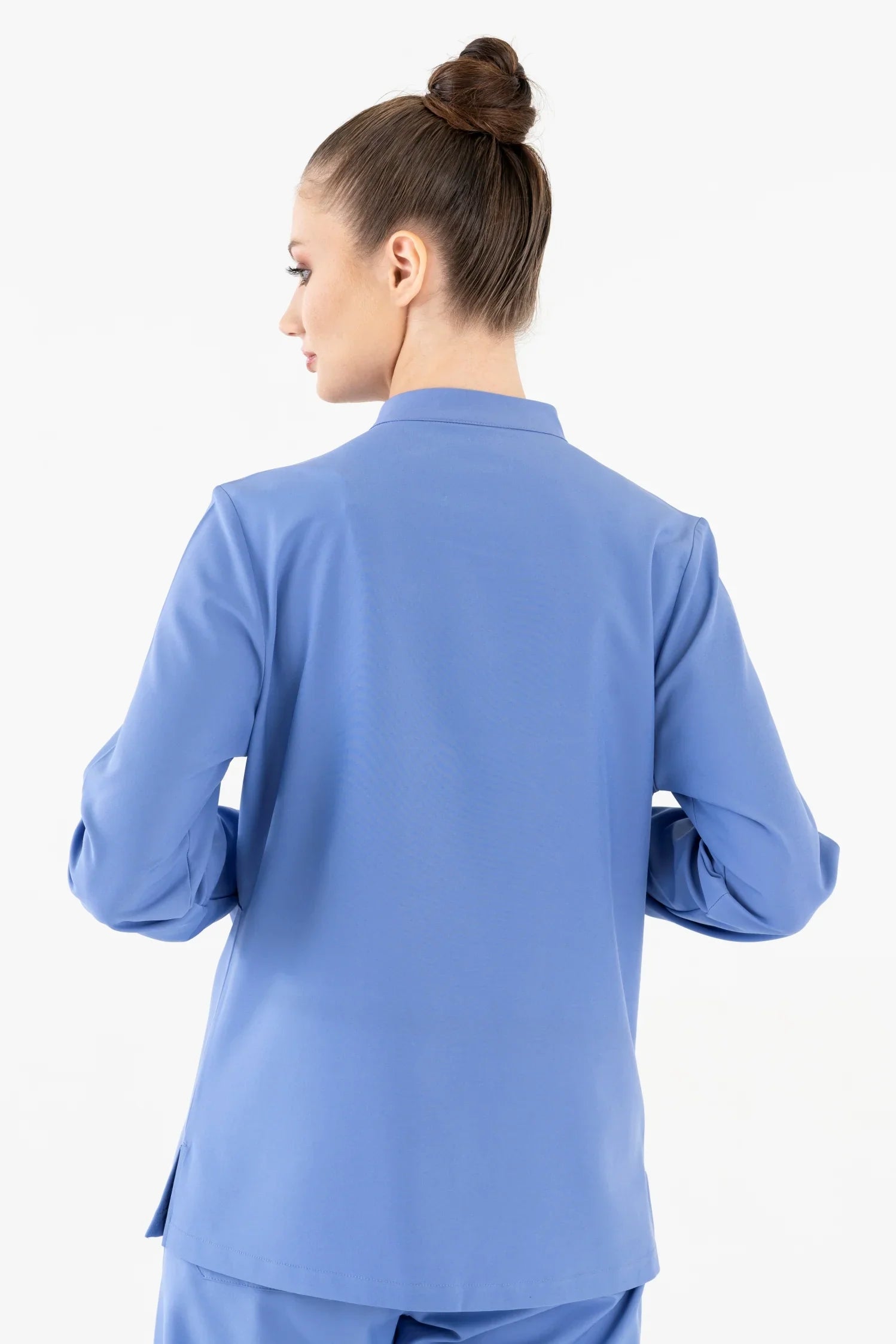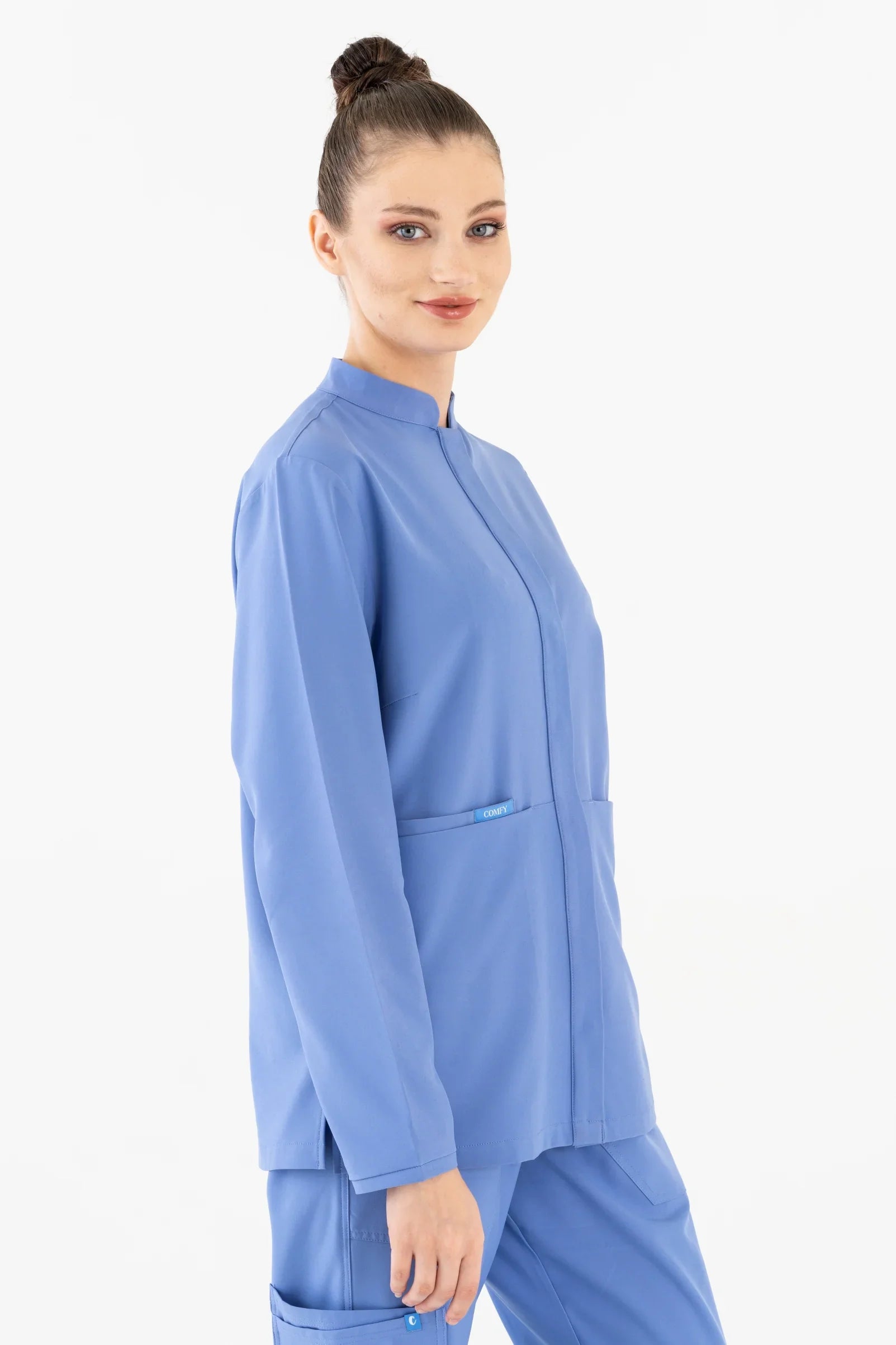 Defne uzun kollu üst; doktorlar, eczacılar, güzellik uzmanları, öğretmenler ve geleneksel formalara modern, şık bir alternatif arayan tüm profesyonel kadınlar için idealdir. Net çizgileri ve fonksiyonel şıklığı ile öne çıkan Defne üst ile stilinizi bir adım öteye taşıyın.