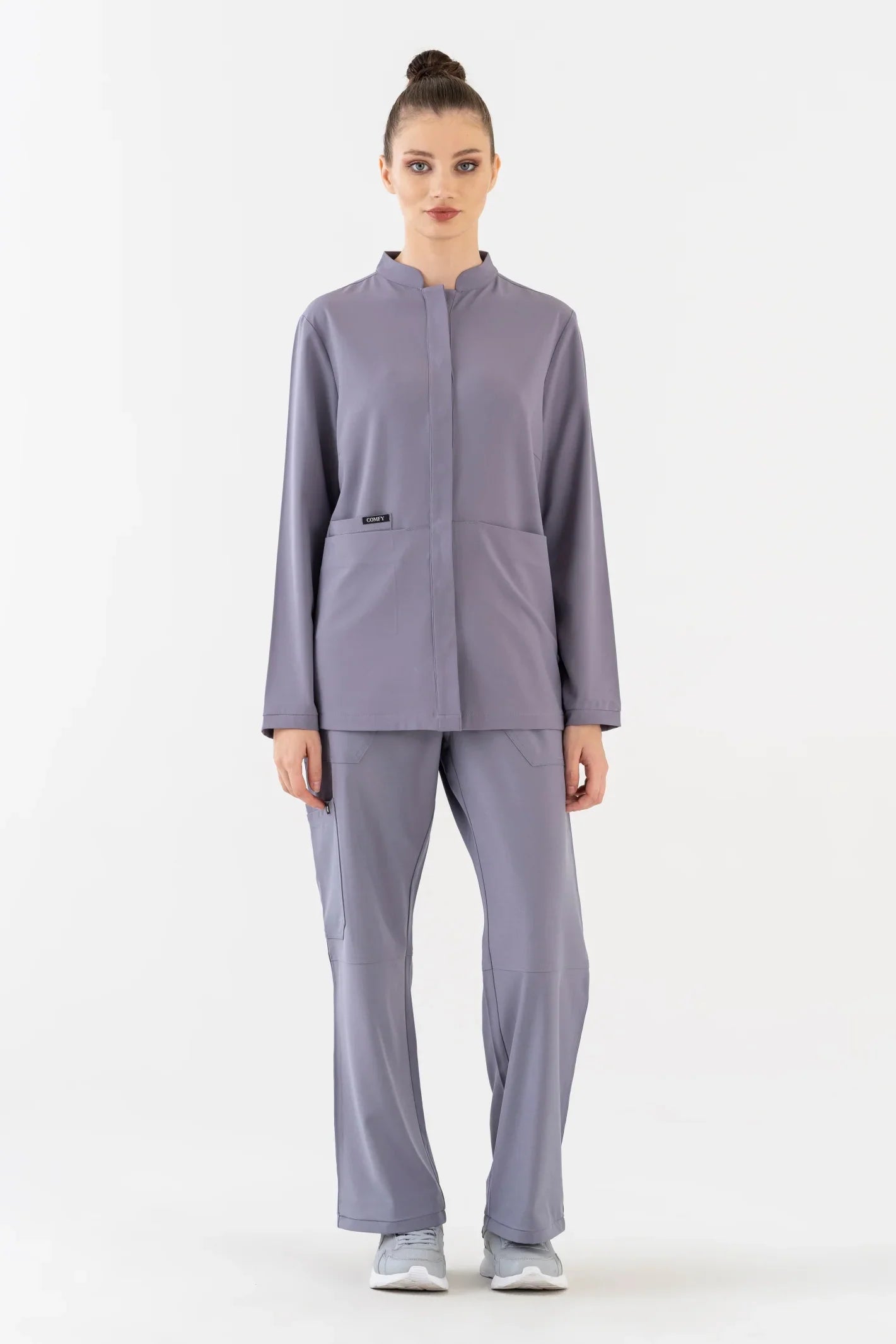 Defne uzun kollu üst; doktorlar, eczacılar, güzellik uzmanları, öğretmenler ve geleneksel formalara modern, şık bir alternatif arayan tüm profesyonel kadınlar için idealdir. Net çizgileri ve fonksiyonel şıklığı ile öne çıkan Defne üst ile stilinizi bir adım öteye taşıyın.